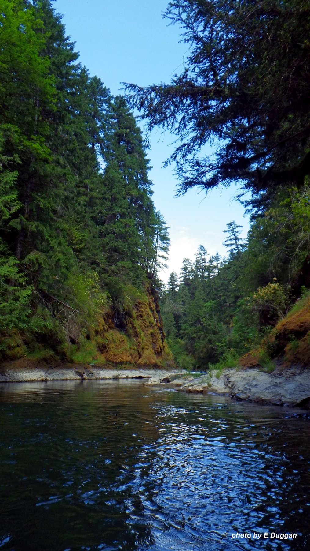The Cowichan River originates at the easterly end of Lake Cowichan in southwestern Vancouver Island, in the lush Coastal Western Hemlock zone. The river is fed by small creeks and has a varying pace; from swift rapids, to waterfalls, to wide, slow channels through expansive valley flats. The river ends its journey at the sea, in the drier maritime Coastal Douglas Fir zone.